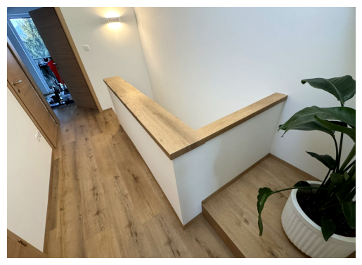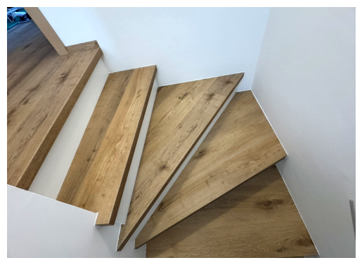 Posebno pozornost smo namenili izvedbi stopnic in talnih oblog, kjer je bilo potrebno uskladiti različne kote, oblike in prehode. Stopnice z zahtevnimi izrezi in natančno prilegajočimi robovi zahtevajo izkušnje, mirno roko in veliko potrpežljivosti. Vsak element je prilagojen prostoru, da se linije nadaljujejo naravno in da celota deluje usklajeno.